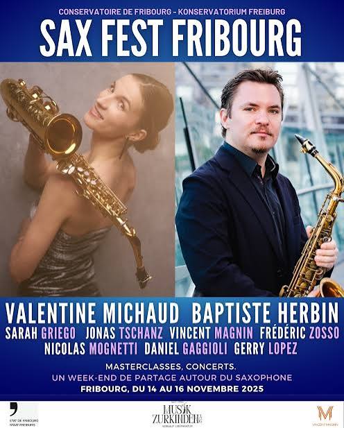 november, 2025 15novAll DayMasterclass Sax Fest Fribourg Event DetailsMasterclass at Conservatoire de Fribourg Event Details Masterclass at Conservatoire de Fribourg Time All Day (Saturday) LocationConservatoire de Fribourg No Comments Post A Comment Cancel Reply Save my name, email, and website in this browser for the next time I comment.